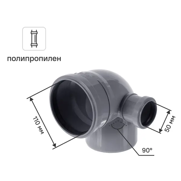 Отвод 110 мм с выходом 50 мм (правый) – незаменимый элемент для внутренней канализационной системы. Полипропилен, из которого он изготовлен, устойчив к высоким и низким температурам, химическому воздействию, ударопрочен. Для установки отвода рекомендуется купить сантехнический силикон и смазать им места соединений. Это облегчит монтаж, улучшит стыковку с трубопроводом, дополнительно защитит от протечек и появления грибка. Уплотнительное кольцо, которое идет в комплекте с отводом, повышает герметичность. Преимущества: - длительный срок службы благодаря высоким эксплуатационным характеристикам материала; - легкость монтажа; - надежность в эксплуатации.
