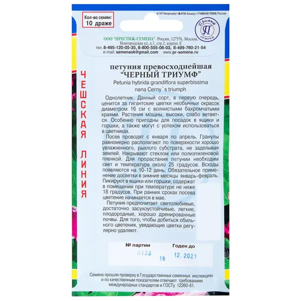 | Сорт | ПЕТУНИЯ ПРЕВОСХОДНЕЙШАЯ "ЧЕРНЫЙ ТРИУМФ" |
