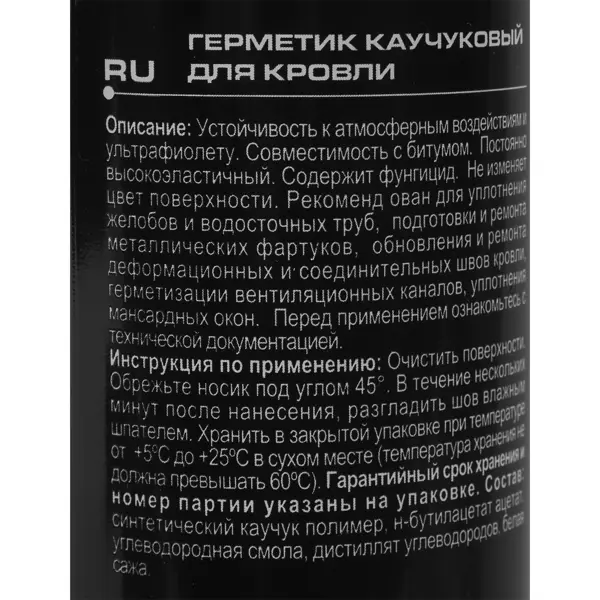 Черный герметик на основе синтетического каучука Tytan Professional в баллоне емкостью 310 мл используют для герметизации конструкций кровли, брандмауэров, элементов водостока, заполнения деформационных швов вокруг дымоходов, люков, вентиляционных проходов. Обеспечивает влагоустойчивое, постоянно эластичное соединение, идеально подходит для ремонта зазоров и швов между материалами разных типов. Преимущества: - высокая адгезия к влажным и сухим кровельным материалам; - устойчивость к плесени, атмосферным осадкам, УФ-лучам; - универсальность; - удобство использования; - доступная цена. **Расход:** ориентировочно 5,5 погонных метров при толщине шва 5мм*5мм.