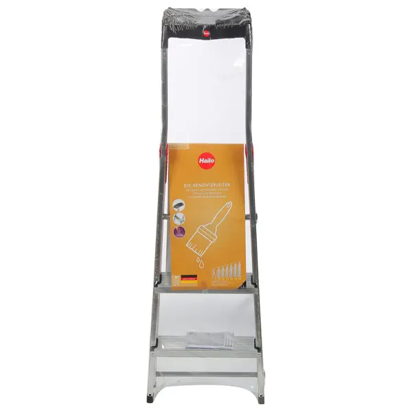 Стремянка алюминиевая Hailo 3 ступени 8160-307, лоток для инструментов, максимальная нагрузка 150 кг