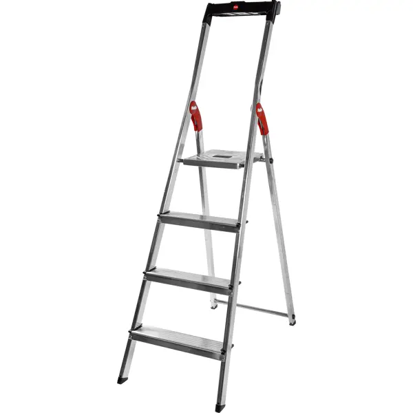 Стремянка алюминиевая Hailo 4 ступени 8160-407, лоток для инструментов, максимальная нагрузка 150 кг