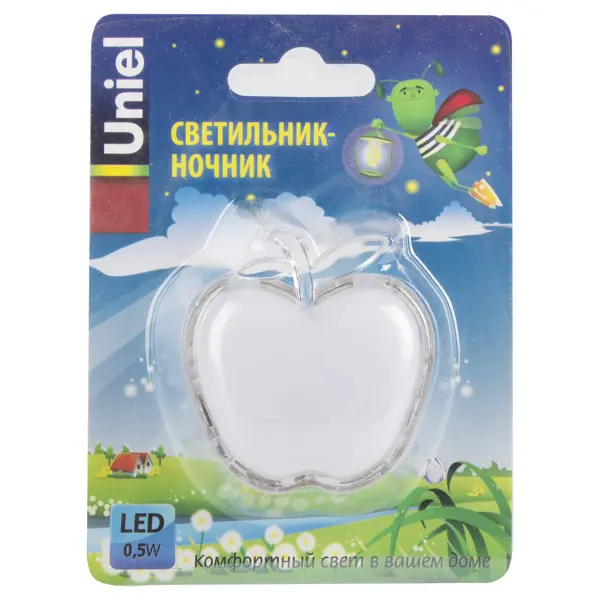 Ночник «Яблоко» — практичный и компактный светильник, предназначенный для создания уютной атмосферы в тёмное время суток. Корпус в форме фигурки выполнен из полупрозрачного пластика и оснащён тремя RGB светодиодами, суммарная мощность которых составляет 0,5 Вт. Благодаря этому представленная модель является абсолютно безопасной и экономичной в работе. При этом изделие работает напрямую от розетки и не мерцает во включенном режиме, дает мягкий и приглушённый свет. С такой «игрушкой» любой ребёнок сможет спать в своей комнате самостоятельно. ### Преимущества: - эксплуатируется без батареек; - прост в использовании. **БЕРЕЖНО К ЛЮДЯМ, БЕРЕЖНО К ПРИРОДЕ** - Светильники и лампы с классом энергоэффективности A и выше потребляют меньше энергии* при той же яркости, что снижает расходы на электричество и помогает бережнее относиться к природным ресурсам. Благодаря долгому сроку службы такое освещение не требуют частой замены и экономит бюджет. *по сравнению с моделями классов энергопотреб