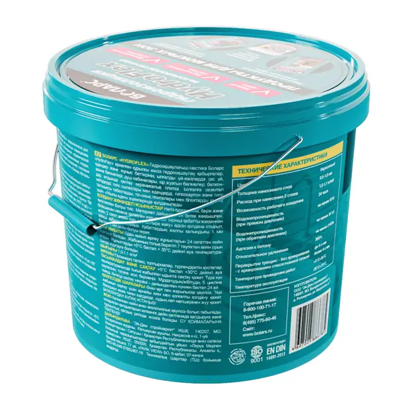 Гидроизоляционная мастика **БОЛАРС HydroFlex 6 кг.** обладает повышенной эластичностью, за счет чего способна перекрывать трещины до 4 мм. Отличается высокой адгезией к бетону и высоким показателем прямой водозащиты (W15), выдерживает прямое давление 15 Атм, что соответствует 155 метрам водяного столба. Надежно защищает от протечек. Предназначена для устройства бесшовной гидроизоляции стен, полов и рабочих поверхностей во влажных помещениях (кухни, ванные комнаты, душевые кабины, прачечные, балконы) перед облицовкой керамической плиткой. Для дальнейшей облицовки рекомендуется использовать высокоадгезионные плиточные клеи класса не ниже С2. Используется в системах «теплый пол». Применяется как для внутренних, так и для наружных работ. **Основания** Для защиты оснований из бетона, кирпича, пенобетона, каменных и керамических кладок, цементно-песчаных штукатурок, в том числе для защиты чувствительных к влаге оснований: гипсовых штукатурок и полов, гипсокартонных и гипсоволокнист