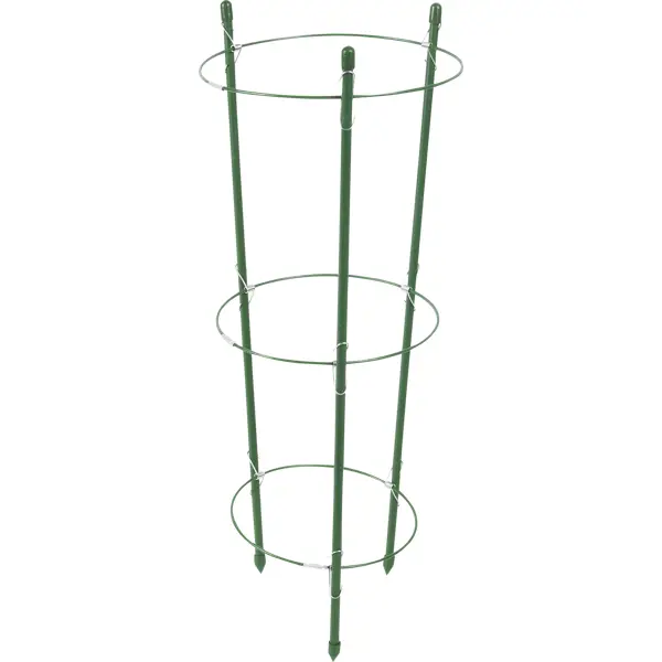 Поддержка для цветов позволяет создать растениям наилучшие условия для роста и развития, уберечь их побеги от повреждений в ветреную погоду. Разборная конструкция состоит из трех опор высотой 45 см и трех колец различного диаметра. В собранном виде самое маленькое кольцо находится возле земли, что помогает сформировать компактный куст, а самое большое вверху, благодаря чему побеги можно зафиксировать таким образом, чтобы каждому было достаточно солнечного света. Все элементы изготовлены из металла. Преимущества: - многоразовое использование; - простота установки; - прочность; - выгодная цена.