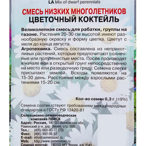 | Сорт | Смесь низких многолетников цветочный кок |