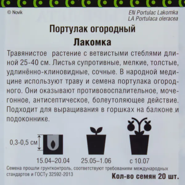 | Норма высева | 15–20 г/м² |