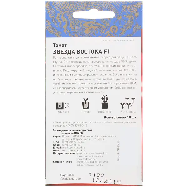| Период для проращивания рассады | ['Февраль', 'Март'] |