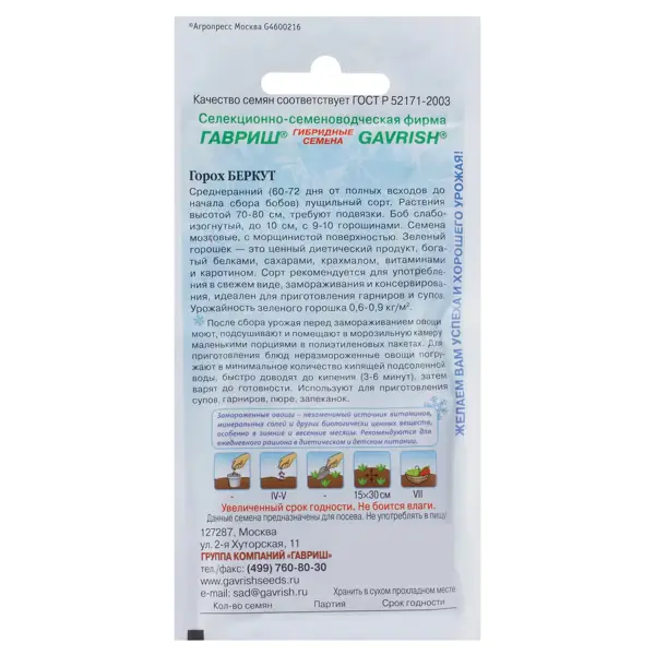 | Тип продукта | Семена овощных культур |