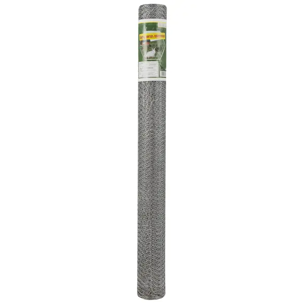 **Сетка металлическая плетеная** используется при возведении ограждений (заборов, калиток), обустройстве вольеров для животных. Также применяется при штукатурных работах и монтаже тепловой изоляции. Сетка плетеная, изготовлена из железной проволоки с цинковым покрытием серого цвета. Обработка защищает материал от коррозии и воздействия атмосферных осадков. Диаметр прутьев — 13 мм. Сетка поставляется в рулоне, размер — 1х10 м. Изготовлена в Китае.