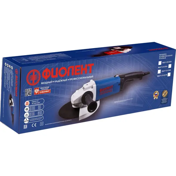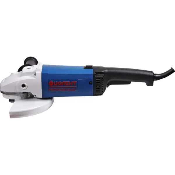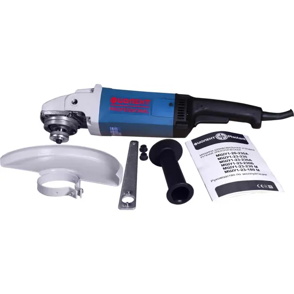 **Углошлифовальная машина «Фиолент» МШУ1-20-230А** — электроинструмент, используемый для зачистки, резания и полировки твердых поверхностей. Применяется при обработке металла, бетонных конструкций, камня. Для удобства исполнителя и погашения вибрации предусмотрена дополнительная съемная рукоятка, которую можно установить в одной из трех позиций. ### Основные характеристики - Мощность — 2300 Вт. - Рабочая скорость — 6500 об/мин. - Диаметр шлифовального/отрезного диска — 230 мм. - Вес — 5,85 кг. ### Особенности Редуктор может разворачиваться на 90°, что значительно упрощает процесс обработки. Защиту двигателя от перегрузок при подключении к сети обеспечивает опция плавного пуска. Конструкция шпинделя позволяет быстро заменить насадку. При использовании режущих дисков рекомендуется устанавливать защитный кожух.