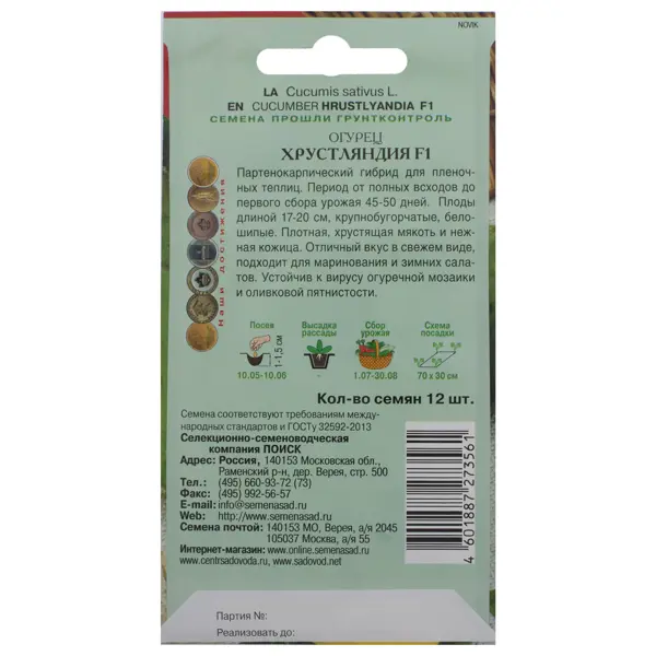 | Период для проращивания рассады | ['Февраль', 'Март'] |