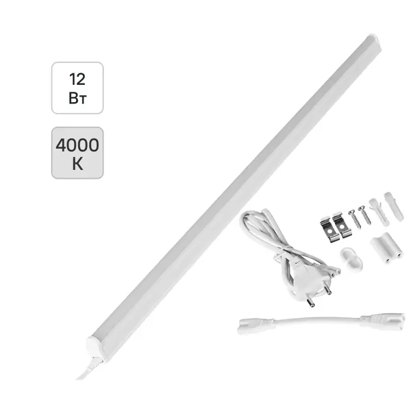 **Светильник светодиодный** — компактное устройство для подсветки, дополнительного освещения и декорирования помещений. Прибор имеет минималистичное оформление. Прост в монтаже. Кнопка включения и выключения на светильнике. Светодиодные лампы обеспечивают длительный срок бесперебойной работы (до 30 000 часов), редко выходят из строя и безопасны при повреждении. Потребляют очень мало энергии. ### Характеристики прибора - Тип лампочек — LED. - Мощность лампочки — 1000 лм. - Потребляемая мощность лампочки из комплекта — 12 Вт. - Цветовая температура — 4000 К. Цвет освещения — естественный белый. - Степень защиты — IP20. Прибор предназначен для эксплуатации в закрытых сухих помещениях. **БЕРЕЖНО К ЛЮДЯМ, БЕРЕЖНО К ПРИРОДЕ** - Светильники и лампы с классом энергоэффективности A и выше потребляют меньше энергии* при той же яркости, что снижает расходы на электричество и помогает бережнее относиться к природным ресурсам. Благодаря долгому сроку службы такое освещение не требуют частой зам