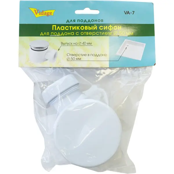 **Сифон для душевого поддона Vidage** — элемент водосливной арматуры, который используется для отвода воды в канализационную сеть и выполняет функции гидрозатвора: препятствует проникновению неприятных запахов и токсичных газов из канализации в помещение. Сифон с металлическим выпуском. Подходит для поддонов с диаметром отверстия 50 мм. Страна производства товара — Россия.