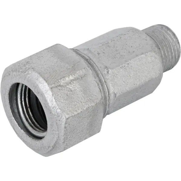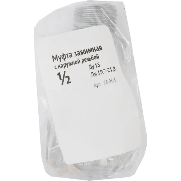 **Муфта соединительная** предназначена для фиксации элементов трубопровода в жилом или нежилом помещении. Конструкция муфты представлена цилиндром с наружной резьбой для герметичного соединения отрезков в единую систему. Процесс монтажа доступен даже неопытному пользователю. При необходимости проведения ремонта или замены компонента трубопровода муфта демонтируется. - Муфта предназначена для перехода стандартных труб с наружным диаметром от 19,3 до 22,0 мм на резьбу 1/2" дюйма. - Материал муфты устойчив к механическим воздействиям, повышенной влажности и коррозии. - Легкий и надежный монтаж.
