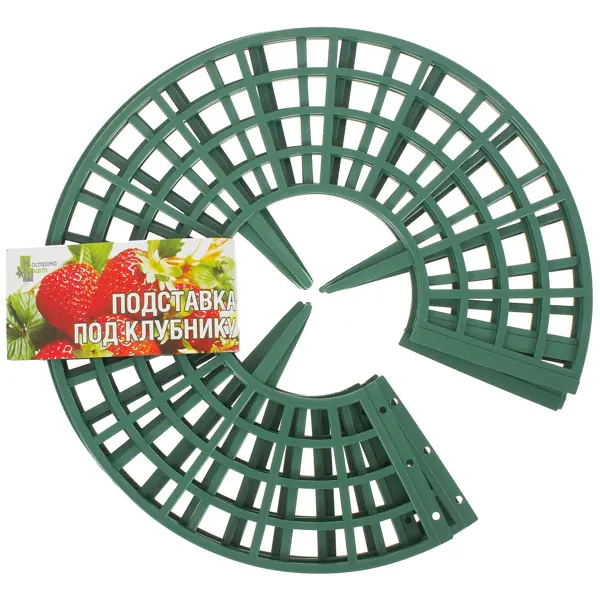 **Подставка под клубнику** предназначена для защиты ягод от контакта с землей. Помогает сохранить урожай от плесени и гниения, легко устанавливается, не повреждает корни растений. Верхний диаметр — 255 мм, нижний — 95 мм, длина колышков — 90 мм. В комплекте 5 подставок.