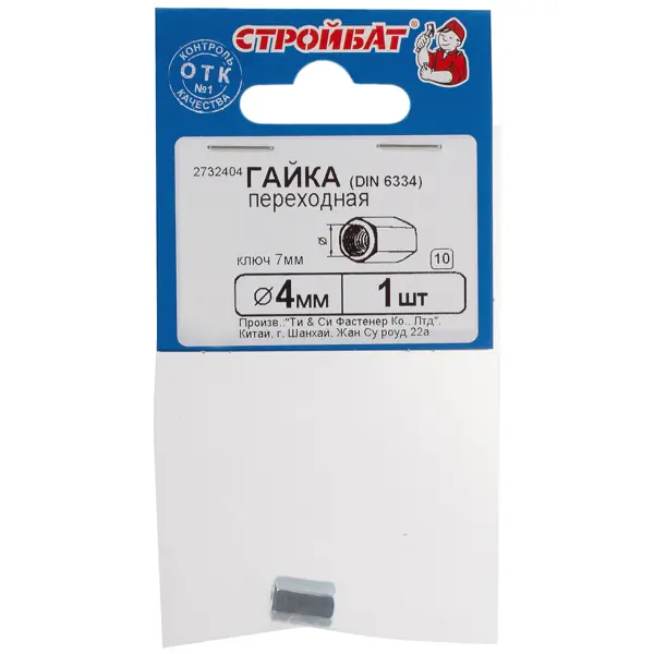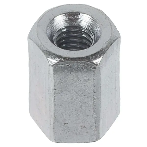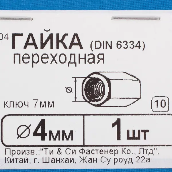 **Гайка переходная DIN 6334 M4** — крепежная деталь, предназначенная для соединения резьбовых шпилек и штифтов. Другие названия метиза — удлинительная, удлиняющая, длинная. Используется для соединения деталей в промышленности, приборостроении, строительстве. Соединение осуществляется с помощью гаечного ключа. ### Особенности крепежа - При соединении двух шпилек их концы должны располагаться точно посередине соединяющей гайки. В процессе монтажных работ при необходимости от гайки отрезают куски нужной длины, для усиления прочности соединения на концах накручивают контргайки. - Резьба диаметром 4 мм. Длина гайки равна трем диаметрам резьбы. - В упаковке 1 штука. - Гайки изготавливаются из углеродистой стали и защищаются с помощью цинкового покрытия, предохраняющего от коррозии.