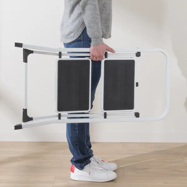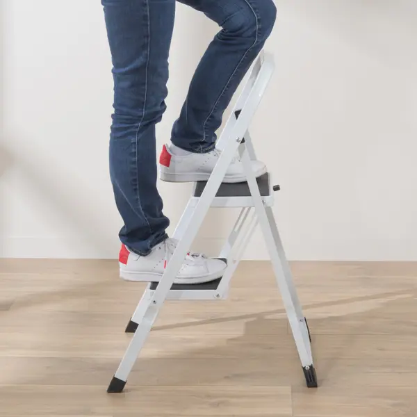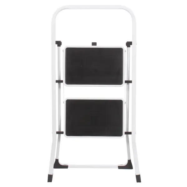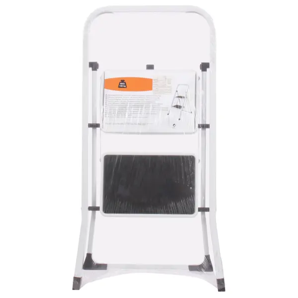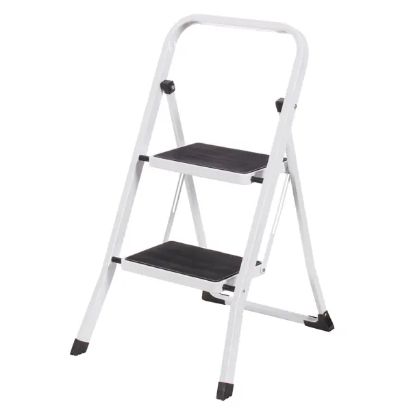 **Стремянка** способна выдержать нагрузку до 150 кг, имеет две ступени. Предназначена для использования во время строительства и отделки, монтажных и бытовых работ, ухода за садом и зелеными насаждениями. Высота в сложенном виде 88см, в раскрытом для работы 79см. ### Преимущества - Изготовлена из прочных материалов, защищенных антикоррозионным покрытием. - Ступени оборудованы противоскользящими прорезиненными ковриками. - Специальные наконечники ножек, снабженные протекторами, предотвращают проскальзывание лестницы по опорной поверхности. - Простая конструкция обеспечивает быстрый перевод приспособления из рабочего положение в сложенное, облегчая переноску и хранение.