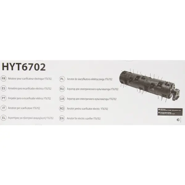 **Аэратор для скарификатора электрического YT6702** - режущее приспособление для скарификатора YT6702 для удаления высохшего травостоя, незначительного подрезания и омоложения газонной травы, а также прокола грунта для его кислородного насыщения.