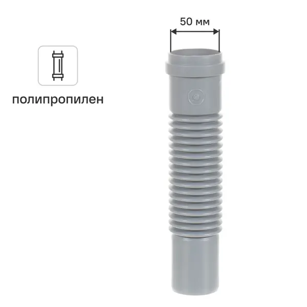 **Гибкий соединитель** фитинговый элемент, предназначенный для отведения в канализационную систему сточных бытовых вод. Используется при установке внутренней канализации, так как благодаря гибкой конструкции позволяет создавать необходимые разветвления и изгибы. ### Главные преимущества этой модели Соединитель выполнен из полипропилена и поэтому отличается рядом достоинств: - не подвержен воздействию коррозии и ржавчине; - гладкая внутренняя поверхность препятствует образованию засоров; - устойчив к воздействию агрессивных веществ; - прост в установке, легок в транспортировке; - используется в системах, где рабочая температура достигает +75 °С. Гибкий канализационный фитинг выпускается с уплотнителем, за счет чего гарантирует надежность и безопасность соединения. Диаметр 50 мм. Соединитель с гибкой конструкцией произведен в России. На деталь распространяется гарантия 12 лет.