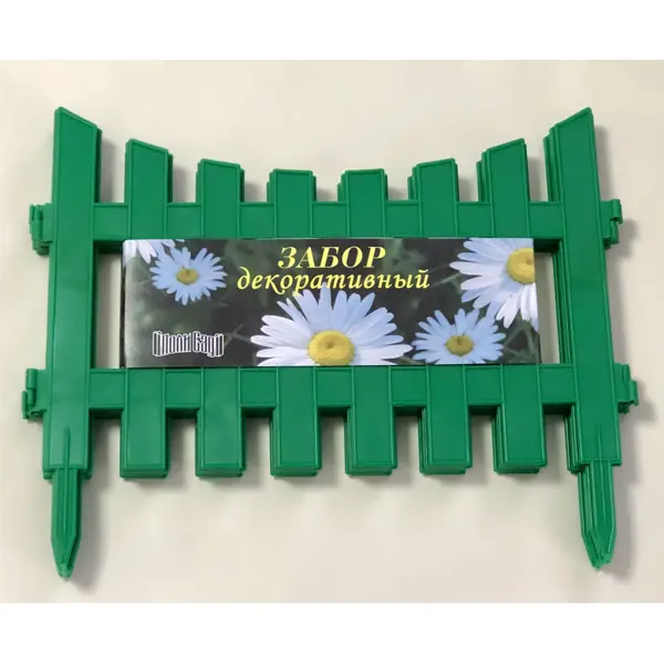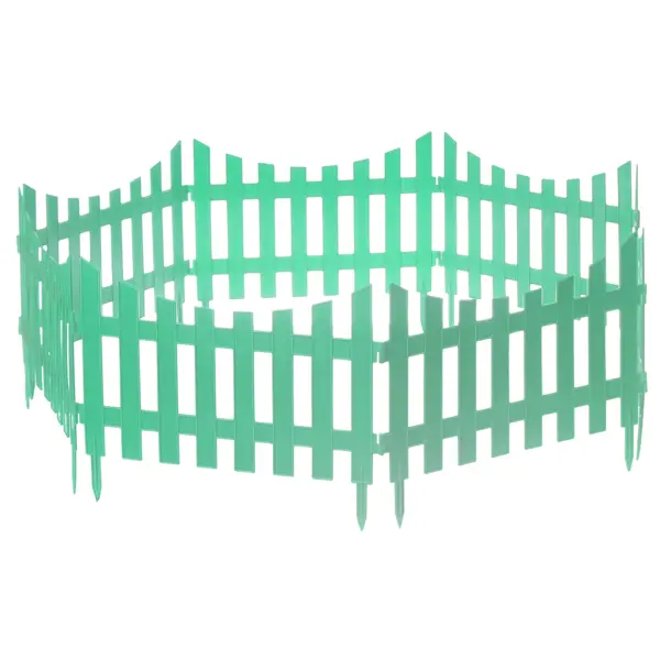 **Забор декоративный №7 зелёный** внешне похож на традиционный деревянный штакетник. При этом ограждение сделано из полипропилена — безопасного искусственного материала, который, в отличие от древесины, не подвержен биопоражениям, не гниет, не деформируется под воздействием влаги и солнечного света. Забор собирается из секций шириной 44 см. Общая длина ограждения 3 м. Секции можно расположить по прямой линии (например, если нужно обозначить границы участка) или замкнуть в круг. Последний вариант удобен в случаях, когда нужно огородить небольшую клумбу или отдельный куст цветов (можно использовать часть секций).