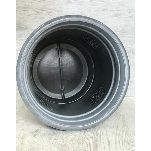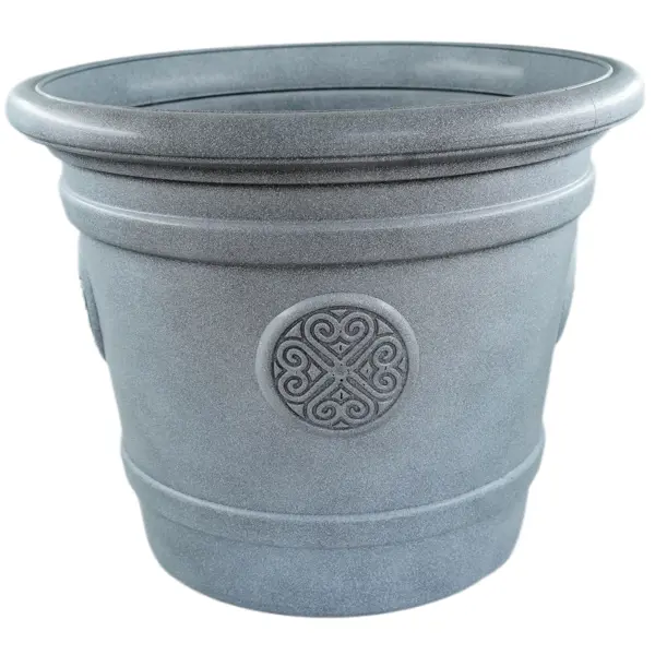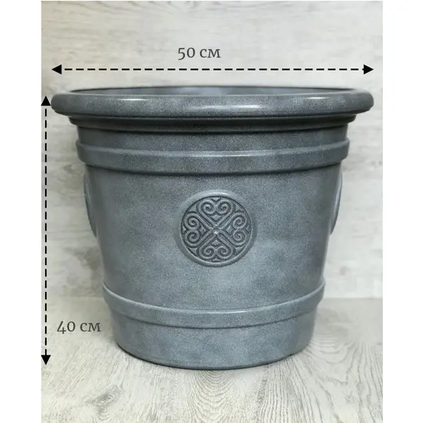 **Горшок кашпо Medallion** можно использовать в оформлении сада, дворовой территории, террасы или просторного помещения. Цилиндрическая ёмкость изготовлена из прочного полипропилена, окрашенного в графитовый цвет. Благодаря текстуре «под камень» дизайн изделия смотрится интересно и органично вписывается в ландшафтный дизайн. Диаметр основания изделия 33 см, верха — 50 см. Объем горшка 40 л, что позволяет выращивать крупные декоративно-лиственные и цветущие растения, мелкие деревца. ### Преимущества - Устойчивость к атмосферным воздействиям, к влаге. - Морозостойкость. - Небольшой вес — горшок легко переносить с места на место. - Простой уход.