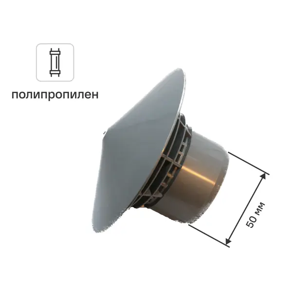 **Грибок канализационный** — дефлектор канализационной трубы. Предназначен для защиты выходного отверстия канализационного стояка от атмосферных осадков. Изготовлен из практичного и долговечного полипропилена. Диаметр — 50 мм. Страна производства — Россия.