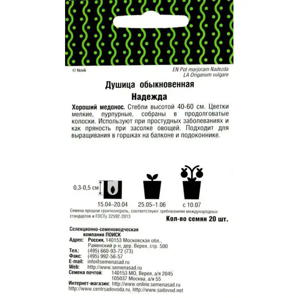 | Период посадки/посева в открытый грунт (месяц) | Апрель |