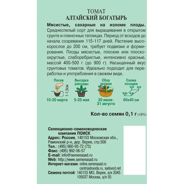 | Период для проращивания рассады | ['Февраль', 'Март'] |