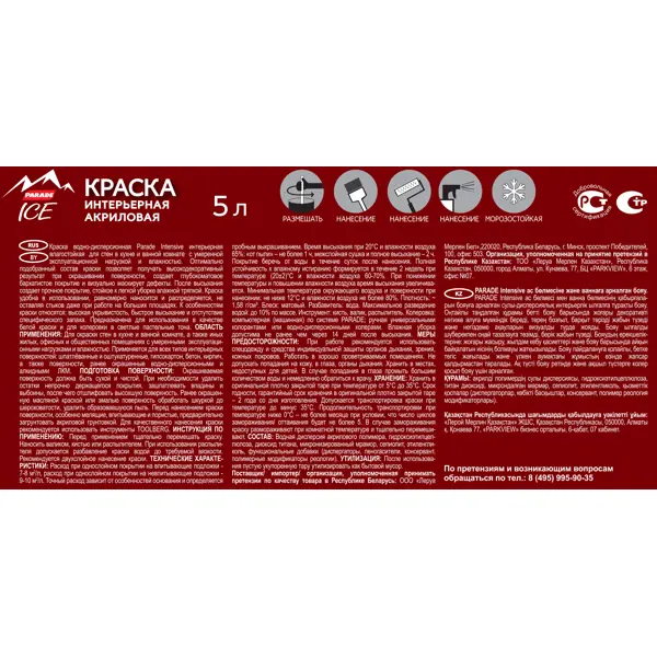 **Внимание!** База А содержит белый пигмент, может использоваться самостоятельно как белая краска и для создания пастельных оттенков. **Краска для стен Parade DIY Intensive** с оптимально подобранным составом позволяет получить высоко декоративный результат при окрашивании поверхности, создает матовое бархатистое покрытие и визуально маскирует дефекты основы. Создает прочное покрытие, выдерживающее легкую уборку влажной тряпкой. Подходит для шпатлеванных и оштукатуренных, гипсокартонных, бетонных, кирпичных, фанерных, ДСП, ДВП, древесины, а также поверхностей, ранее окрашенных водно-дисперсионными и алкидными ЛКМ. **Особенности** - высокая укрывистость - быстрое высыхание - отсутствие выраженного запаха в процессе окрашивания - удобна в использовании - равномерно наносится и распределяется, не оставляя стыков даже при работе на больших площадях **Подготовка поверхности** Окрашиваемая поверхность должна быть сухой и чистой. При необходимости удалить остатки непрочно держащегося п