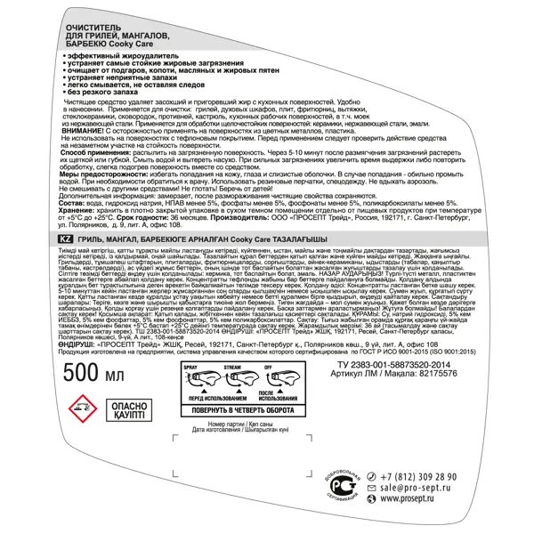 **Очиститель для грилей, мангалов и барбекю Prosept** – готовое средство для очистки поверхностей от пригоревшего жира, нагара, копоти и неприятного запаха. Применяется для очистки: грилей, духовых шкафов, плит, фритюрниц, вытяжки, стеклокерамики, сковородок, противней, кастрюль, кухонных рабочих поверхностей, в том числе моек из нержавеющей стали. **Преимущества:** - эффективный жироудалитель; - удаляет самые стойкие жировые загрязнения; - без резкого запаха; - легко смывается; - не оставляет следов. **Способ применения:** - Распылить на загрязненную поверхность. Через 5-10 минут после размягчения загрязнений растереть их щеткой или губкой. Смыть водой и вытереть насухо. - При сильных загрязнениях увеличить время выдержки или повторить обработку, слегка подогрев поверхность вместе со средством. **Состав:** вода, гидроксид натрия, НПАВ менее 5%, фосфаты менее 5%, фосфонаты менее 5%, поликарбоксилаты менее 5%. Подробнее о том, [**как навести порядок на даче весной**](/advice/kra