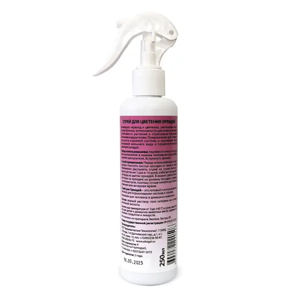 **Спрей для цветения орхидей «Экогель»** — водный раствор геля хитозана на основе молочной кислоты. Состав стимулирует рост наземной части и корневой системы. Способствует увеличению числа бутонов, интенсивности цветения, повышает стойкость орхидей к вредителям, болезням и стрессовым ситуациям. ### Особенности - Раствор полностью готов к употреблению. - Безопасен для людей и домашних питомцев. - Обработку лучше проводить в утренние или вечерние часы, чтобы в момент распыления на растение не попадали прямые солнечные лучи.