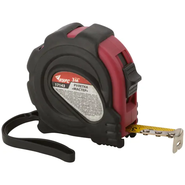 Рулетка Курс 17143 с прорезиненным корпусом, 3 м x 16 мм