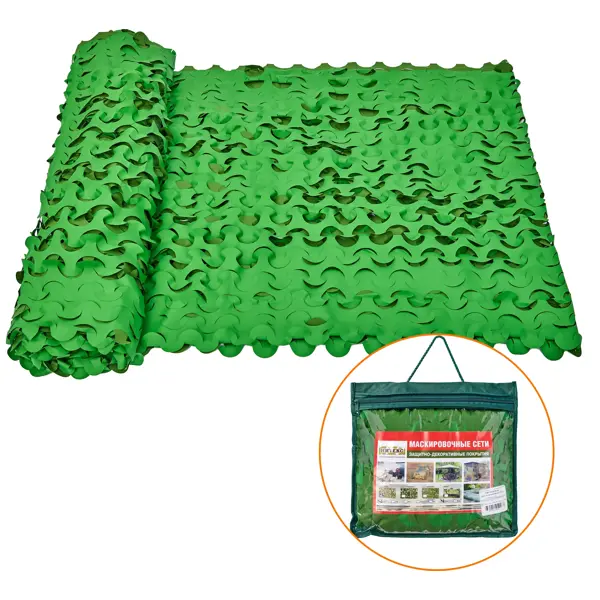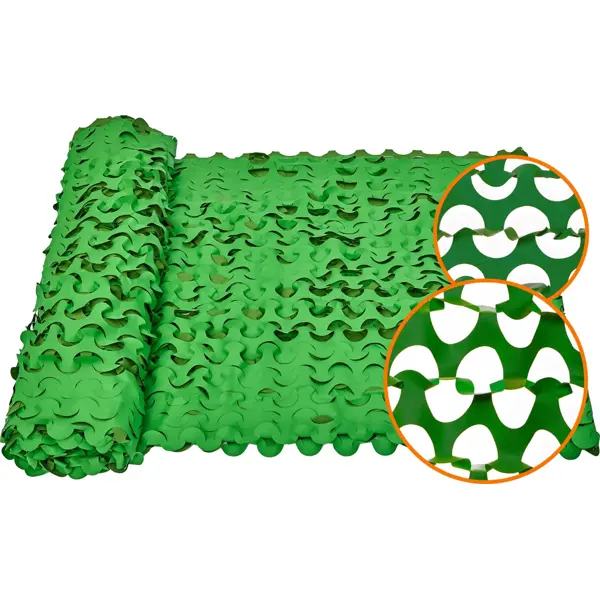 **Сетка маскировочная** — текстильное полотно, предназначенное для оформления изгородей, декорирования фасадов и интерьеров, защиты объектов от прямых солнечных лучей. Обеспечивает затенение до 60%, устойчиво к воздействию влаги, не подвержено гниению и поражению плесенью. Основной материал — полиэфирное волокно, покрытое ПВХ. При отсутствии механических повреждений сеть имеет неограниченный срок эксплуатации. Размер изделия — 2 × 3 м, цвет — зеленый, светло-зеленый. Товар произведен в России.