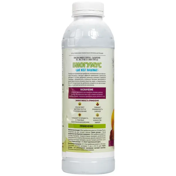 **Удобрение Садовые рецепты «Биогумус»** — концентрированное органическое средство для стимуляции роста растений. Применяется для плодовых деревьев. Уникальное сочетание микроэлементов, бактерий и биологически активных веществ способствует улучшению качественных характеристик почвы, повышает сопротивляемость растений болезням и обеспечивает их правильное развитие. Благодаря гелеобразной форме все питательные вещества, находящиеся в составе, легко усваиваются растениями. ### Особенности