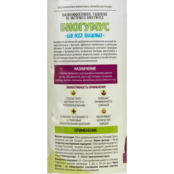 - Возможно использование в сельском хозяйстве. При попадании удобрения в глаза необходимо промыть их проточной водой. Концентрат продается в пластиковой бутылке объемом 0,5 л. Произведено в России.