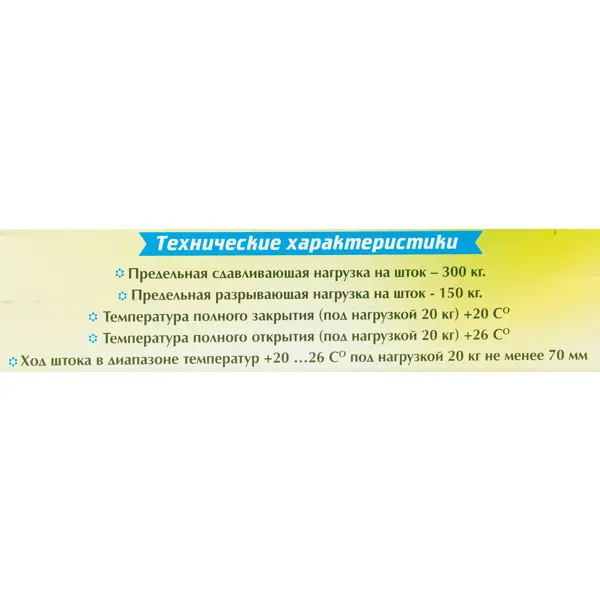 **Термопривод для теплиц** монтируется на двери или вентиляционное окно для осуществления проветривания в автоматическом режиме. Устройство облегчает уход за насаждениями, помогает повысить жизнестойкость сельскохозяйственных культур, предотвратить их перегрев или избыточное охлаждение. Оно экономит время садоводов и огородников, избавляя от необходимости круглосуточно отслеживать состояние растений. Своевременное проветривание помогает поддерживать оптимальный микроклимат в теплице или парнике, способствует удалению излишней влаги, болезнетворных микроорганизмов. Вес модели равняется 0,682 кг, ее размеры составляют 50,4 × 4,7 × 5,6 см. Страна производства товара — Россия. ### Преимущества - Автоматическая регулировка степени открытия дверей и окон в зависимости от погоды делает изделие универсальным, способствует естественному опылению культур и повышению их урожайности. - Материал изготовления устройства — прочная износоустойчивая сталь. - Гара