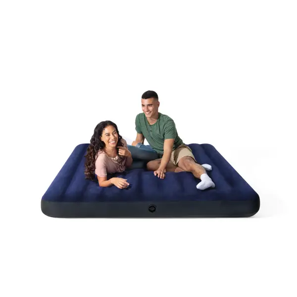**Надувной матрас INTEX 64755 King серии Dura-Beam** предназначен для использования дома или в путешествиях. Он обеспечивает удобство и хороший сон даже в походных условиях. В качестве внутренних перегородок используются высокопрочные полиэфирные волокна, что увеличивает прочность, долговечность и стабильность конструкции. Они не деформируются, демонстрируют устойчивость к разрыву. Покрытие матраса на ощупь напоминает бархат. Благодаря такой текстуре оно хорошо удерживает постельное белье, не позволяя ему скатываться. ### Особенности: - размер — 203 x 183 x 25; - цвет — синий; - насос в комплект не входит; - в сложенном виде матрас не занимает много места, что удобно при хранении и транспортировке; - выдерживает нагрузку до 272 кг; - в комплекте с матрасом поставляется клапан «Два в одном».