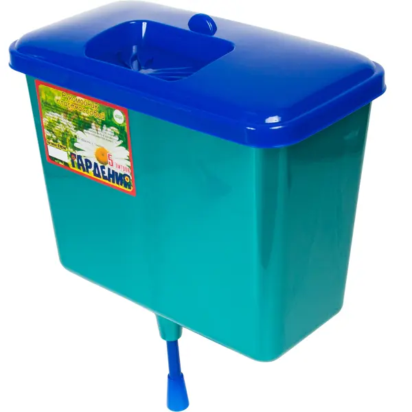 **Рукомойник дачный «Гардения»** — подвесной сосуд для умывания, мойки посуды, фруктов, овощей, ягод. Используется в местах, не оборудованных водопроводом. Может устанавливаться и внутри помещений, и на улице. Модель изготовлена из полипропилена с добавлением голубого красителя, имеет прямоугольную форму. Конструкция снабжена крышкой и подвижным стержнем для подачи воды. При температуре ниже 0˚ С воду из емкости следует сливать. Размеры изделия — 274 × 230 × 140 мм, объем — 5 л. Товар произведен в России. Гарантия — 2 года.