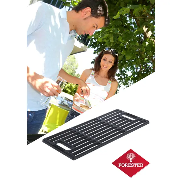 **Решетка-гриль чугунная Forester** обладает плотной структурой и ровной поверхностью. Антипригарное покрытие исключает прилипание пищи. Чугун быстро нагревается, равномерно распределяет и отдает тепло, долго не остывает. Удобные ручки упрощают эксплуатацию — установку и снятие изделия. ### Особенности: - подходит для установки на мангале; - применяется для обжаривания мяса, рыбы, овощей; - для очищения используются влажная губка или тряпка, моющие средства. **БЕРЕЖНО К ЛЮДЯМ, БЕРЕЖНО К ПРИРОДЕ** - Товар содержит не менее 15% вторичного сырья в составе. Выбирая продукцию с переработанными материалами, вы помогаете сокращать количество отходов на полигонах и поддерживаете ответственное потребление.