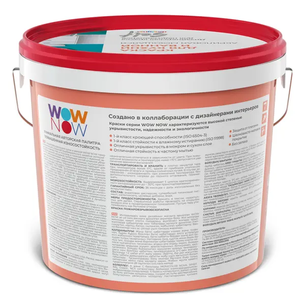 **Внимание!** Базы BC; C; 3; D; ВМ — прозрачная краска, не имеющая в составе пигментов, используется только для колеровки в яркие, насыщенные цвета. **Краска для колеровки для стен кухни и ванны Wow Now** предназначена для создания индивидуального дизайна интерьера в помещениях с повышенной эксплуатационной нагрузкой. Образует благородное бархатистое покрытие, устойчивое к ежедневной влажной уборке с применением растворов синтетических моющих средств. Подходит для обоев под окраску. Специальная формула защитит окрашенную поверхность от износа и выцветания, благодаря чему она сохранит первоначальный вид на долгие годы. **Преимущества** - 1-й класс кроющей способности (ISO 6504-3); - 1-й класс стойкости к влажному истиранию (ISO 11998); - Отличная укрывыстость в мокром и сухом слое; - Повышенная стойкость к частому мытью; - Защита от плесени; - Глубокоматовое антибликовое покрытие; - Без запаха. **Уважаемые клиенты, колерованная краска надлежащего качества возврату и обмену не подле