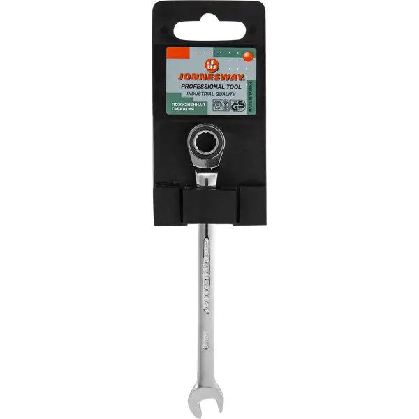 **Ключ комбинированный Jonnesway** предназначен для работ с крепежом. Оснащен двумя функциональными головками, расположенными на противоположных концах: рожковой и накидной. Одна из них с трещоткой. Изготовлен из прочной инструментальной стали, устойчивой к износу, истиранию и коррозии. ### Особенности: - применяется в быту и производственной сфере; - посадочный диаметр — 8 мм.