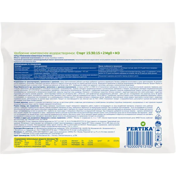 **Удобрение «Фертика» Leafpower для рассады водорастворимое** — комплекс основных минералов (азот, фосфор, калий), обогащенный микро- и макроэлементами в сбалансированном соотношении и доступной для растений форме. Стимулирует увеличение показателей урожайности, повышает сопротивляемость растений к низким температурам и засухе, улучшает качество плодов. Подходит для корневой и листовой подкормки овощных, цветочных и декоративных культур в течение всего периода вегетации. Может применяться в открытом и закрытом грунте. **БЕРЕЖНО К ЛЮДЯМ, БЕРЕЖНО К ПРИРОДЕ** - Приобретая натуральные удобрения, вы выбираете не только лучшее питание для растений, но и способствуете восстановлению плодородия почвы, улучшаете её структуру, влагоемкость и стимулируете деятельность полезной микрофлоры. Его использование исключает риск химических ожогов корней и накопления нитратов в продукции, а также снижает нагрузку на водоёмы.