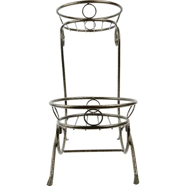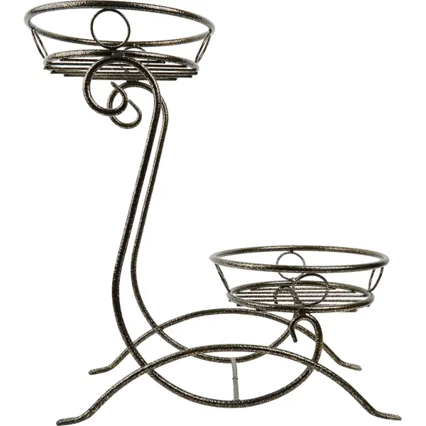 **Подставка под горшки «Орхидея»** — ажурная конструкция высотой 56 см. Изготовлена из стальных прутов, выдерживает вес до 6 кг. Поверхность имеет защитно-декоративное покрытие. Подставка рассчитана на установку 2 горшков диаметром до 28 см. ### Особенности модели - Устойчивость. Конструкция имеет четыре точки опоры. - Морозостойкость. Можно использовать внутри помещений, а также на террасах, открытых площадках. - Эстетичный внешний вид.
