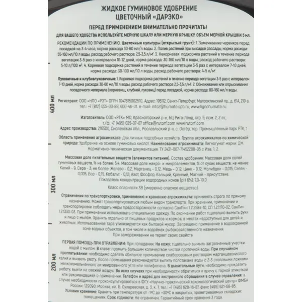 Жидкое гуминовое удобрение Цветочное ДарЭко 0,5л.