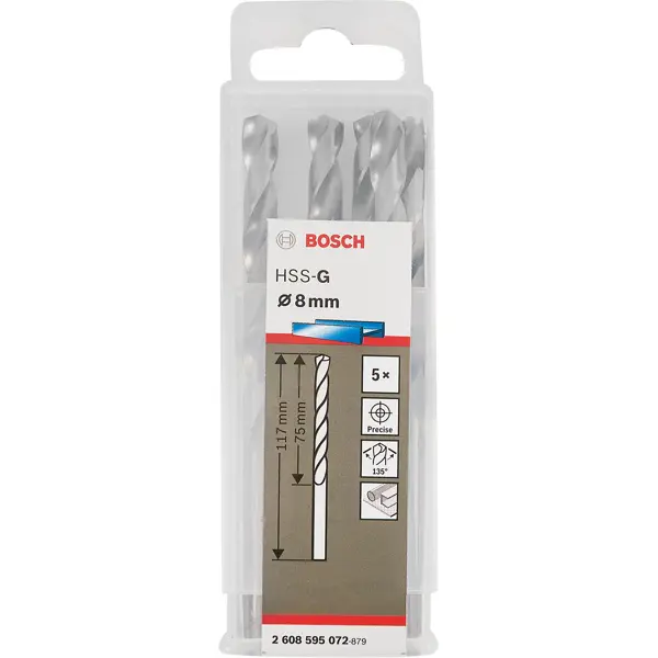**Набор свёрл Bosch** подойдет для подготовки отверстий для последующего монтажа метизов в металлических поверхностях. Инструменты используются для проведения работ внутри и снаружи помещений. ### Особенности: - корпус сделан из стали; - материал не подвержен разрушению вследствие интенсивных нагрузок; - размеры: 8 x 117 мм; - в комплекте поставляются 5 штук.