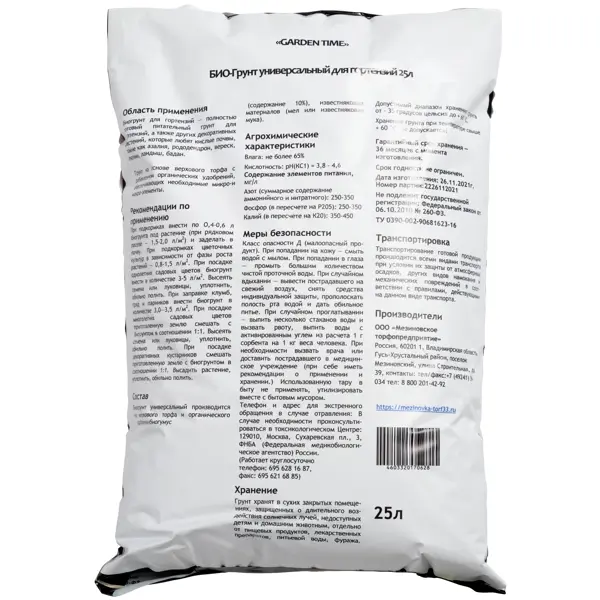 - биогрунт рекомендуется хранить в сухих помещениях вдали от солнечного света, пищевых продуктов, воды при температуре -35-60°C.