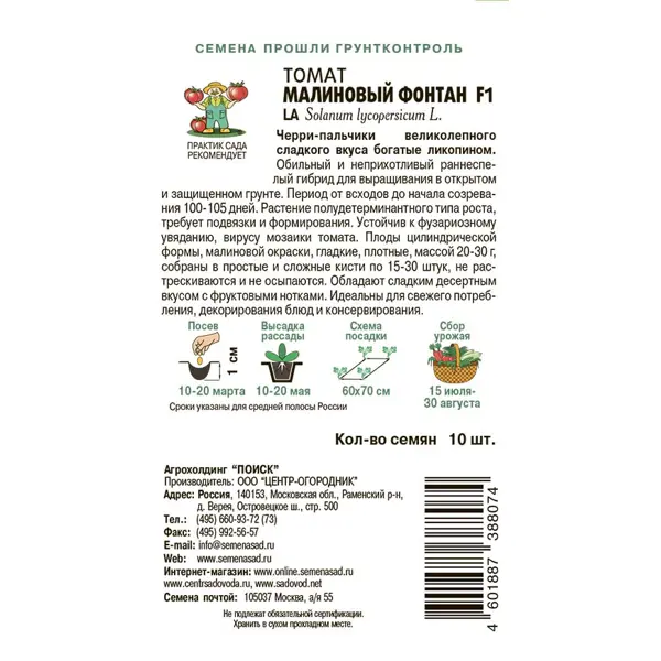| Период для проращивания рассады | ['Февраль', 'Март'] |