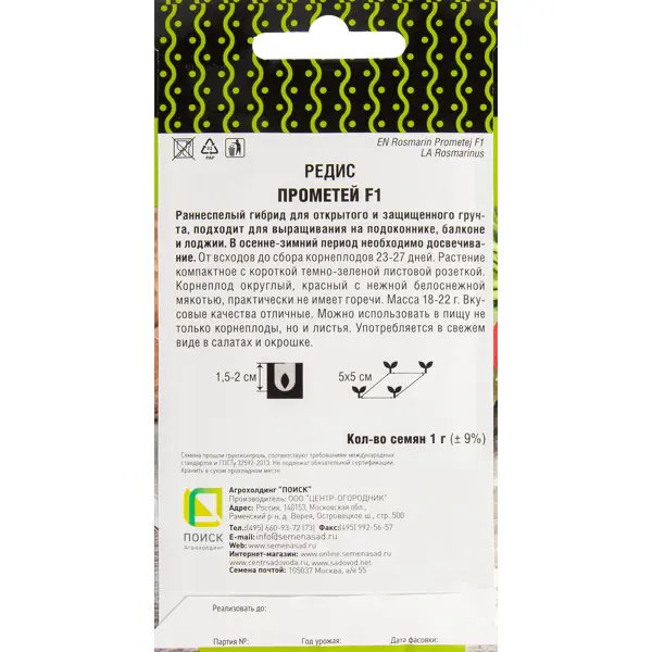 | Тип продукта | Семена овощных культур |
