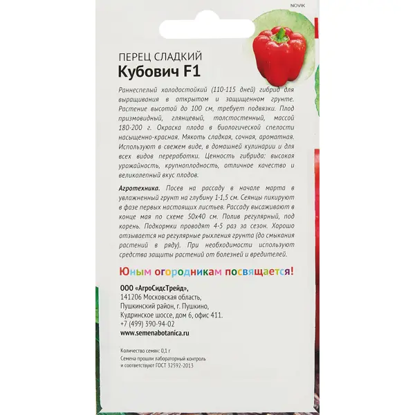 | Тип продукта | Семена овощных культур |