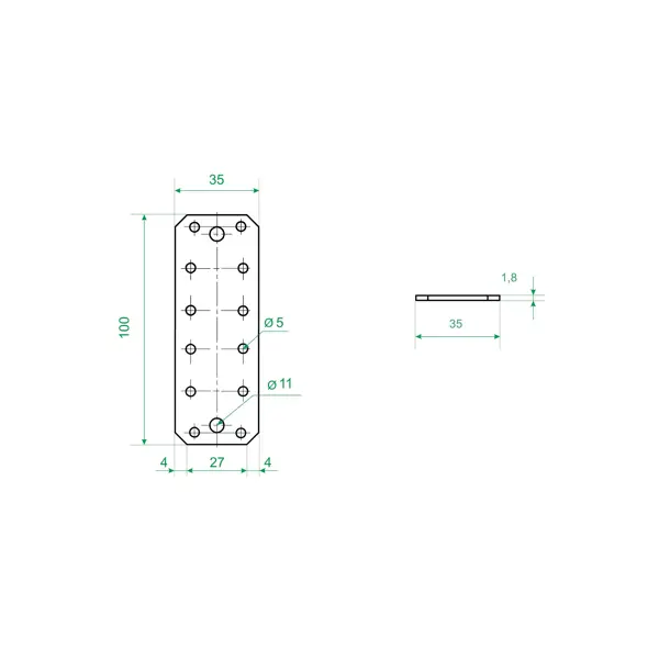 Пластина крепежная КР 100x35x1.8 оцинкованная сталь цвет серебро